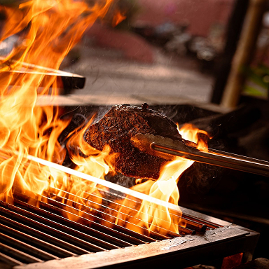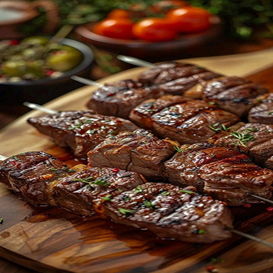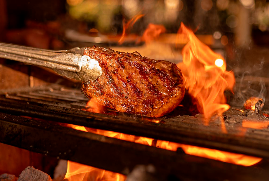 A gastronomia é levada a sério: brasa de verdade, carnes selecionadas e a liberdade de escolher no menu entre cortes especiais ou espetinhos preparados na hora.